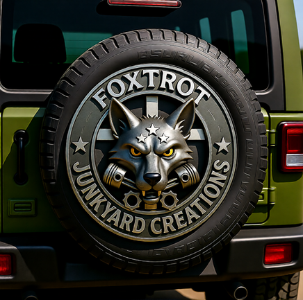 Foxtrot Junkyard Creations is a veteran-owned company that transforms abandoned cars and salvaged materials into unique emblems, keychains, and metal art, preserving automotive heritage in every piece.